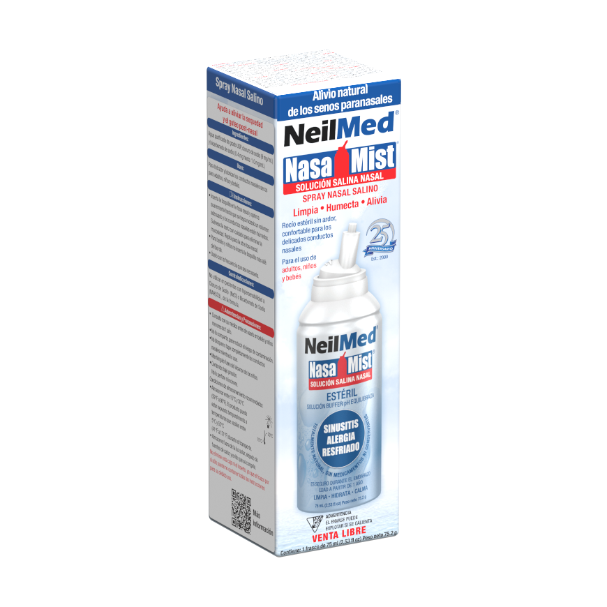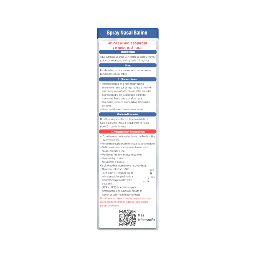 Spray nasal de solución salina que ayuda aliviar las alergias, irritación nasal, sequedad y la congestión del resfriado común o gripe. Hidrata y lubrica los conductos nasales secos para adultos, niños y bebés de un año en adelante.