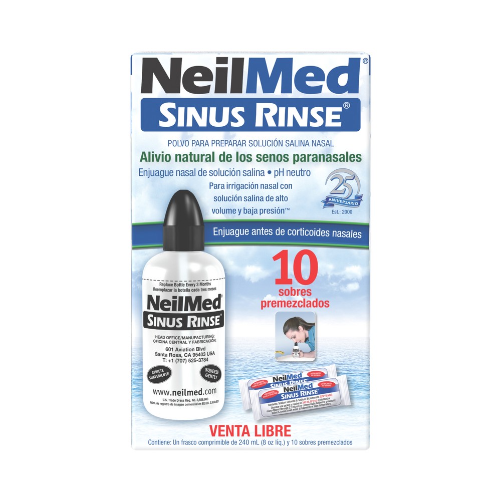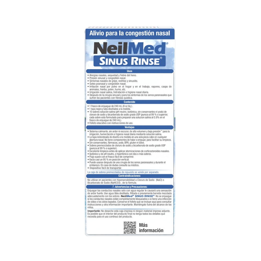 Kit de higiene e hidratación diaria para las fosas nasales y senos paranasales en base a una solución salina con sistema de lavado de gran volumen y baja presión.